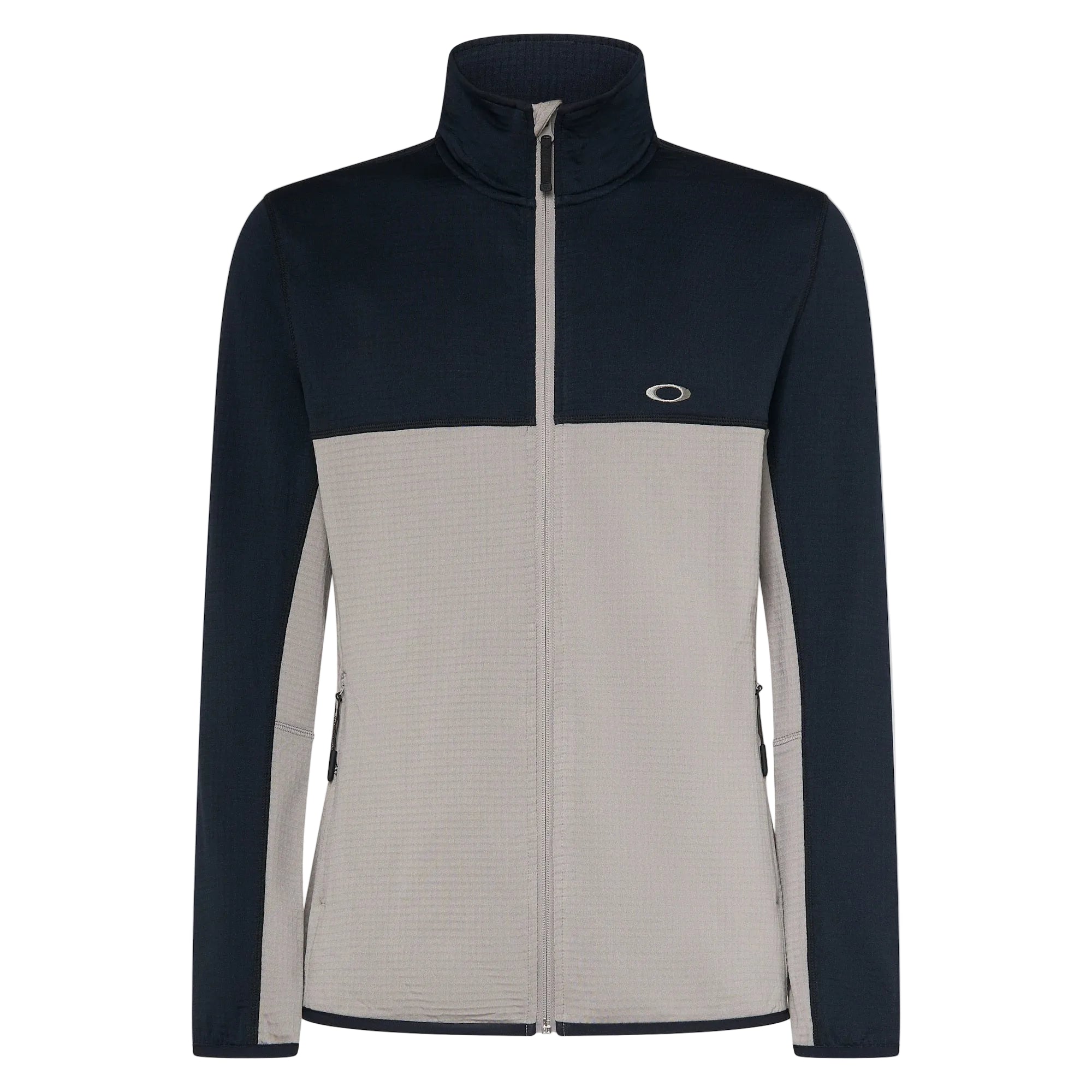 Insulating full-zip polyester grid sweatshirt, also ideal as a warming mid-layer in snowy conditions. Made from a blend of polyester and spandex, its slim silhouette and stretch binding at the hem and cuffs deliver bespoke comfort but also maximum flexibility of movement during your mountain activities. The mid-collar construction provides additional warmth around the neck and there are two zippered hand pockets for keeping your phone or valuables safe from harm. Decorated with embroidered Oakley logos.