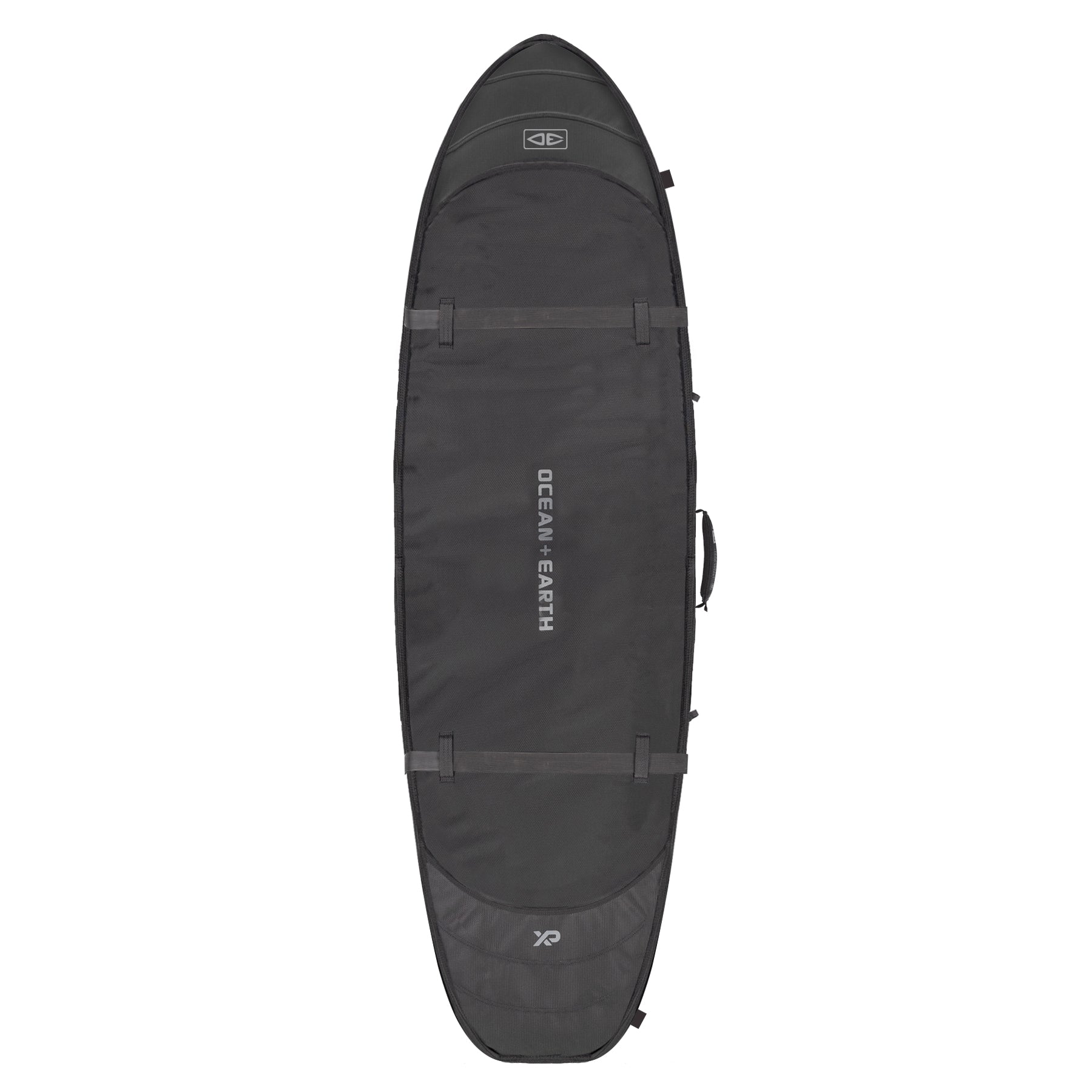A wider fitting surfboard cover designed for carrying 2 fish and or short boards. This travel cover has shock-absorbing and anti impact foam, external compression straps and 20mm of protection on the rail, nose and tail. Ideal for domestic or international surf trips.