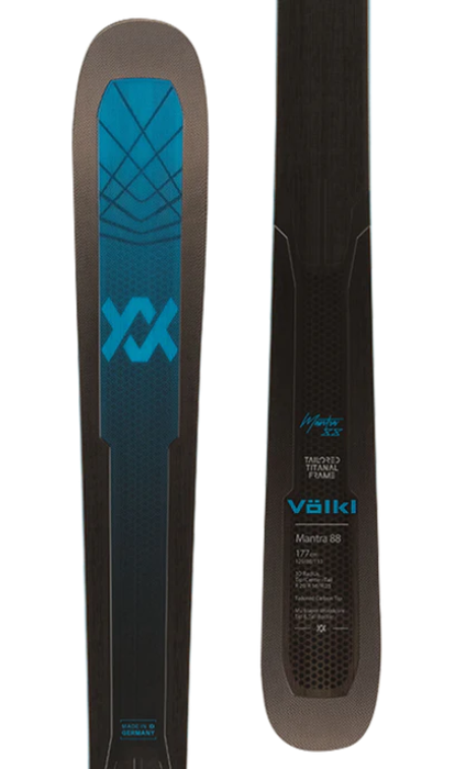 The all-mountain freerider in state-of-the-art construction with an extremely wide range of use for experienced skiers who celebrate powerful turns in all terrain and on all slopes. The 2025 Volkl Mantra 88 comes with a different geometry and a centre radius shortened by one metre in the 3D Radius Sidecut. It is important to know that the three different radii combined in one ski generally ensure enormously versatile cornering characteristics.